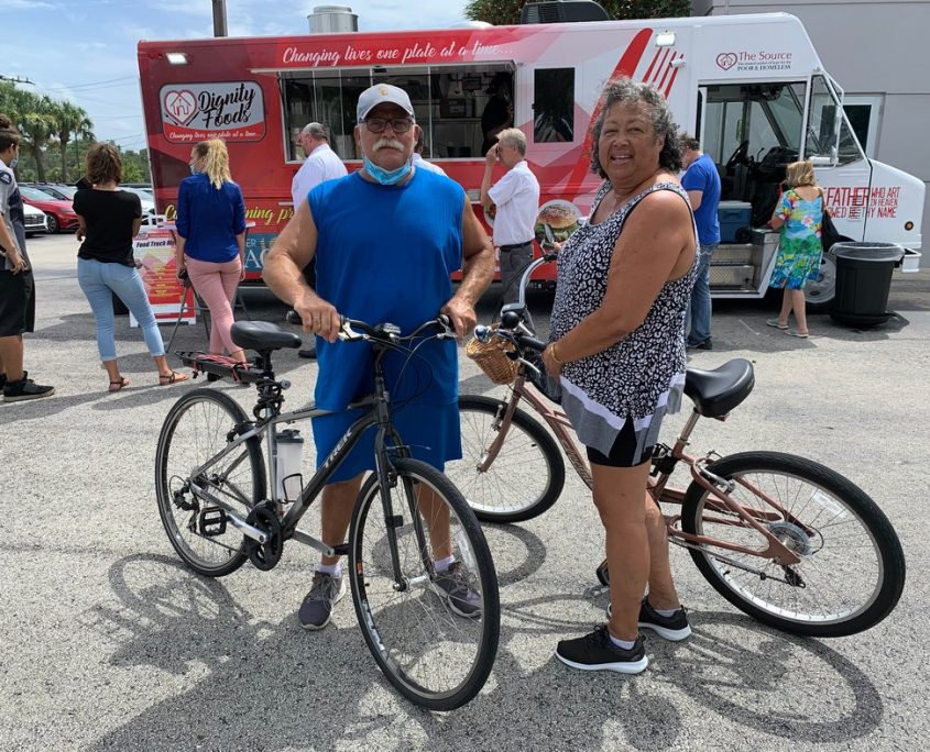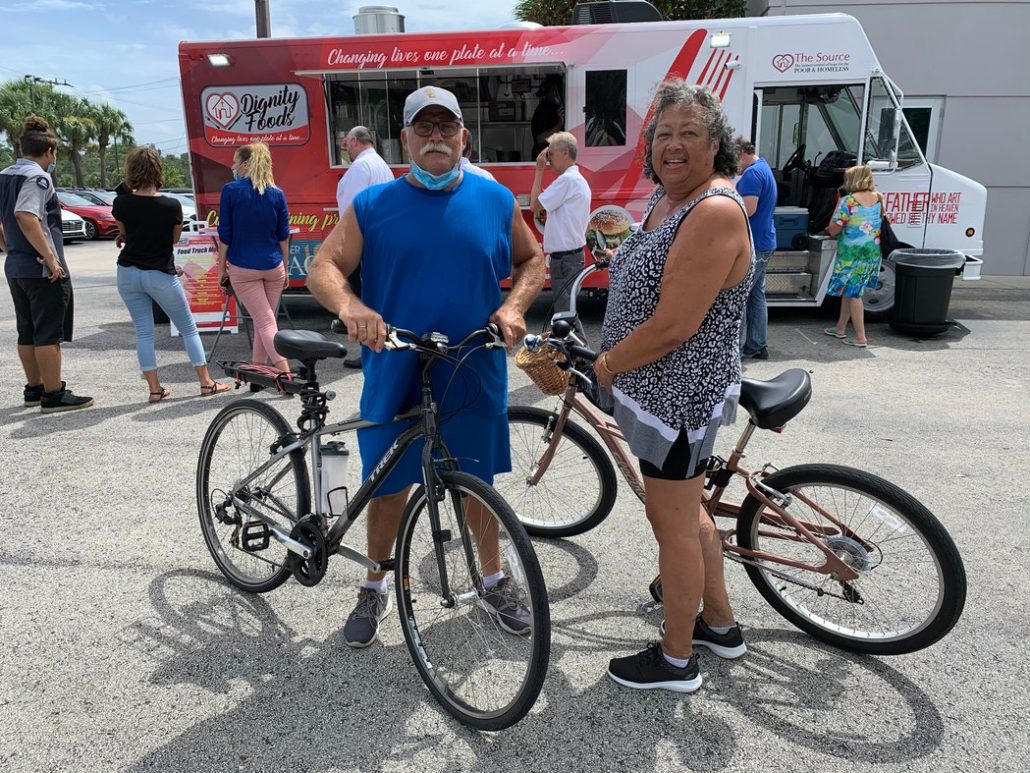 The Dignity Food Truck ‘s official entrance onto the Vero Beach food scene started with a huge success from the parking lot of Tropical Scooters. Balloons waved, the media came out in droves, well-wishers attended and nearly 100 lunches were sold! The Source thanks the community at large and especially Impact 100 for taking this dream and making it a reality for the organization and for the homeless learning a new trade to to help them take a new step into acquiring a job into the food business. This is a win-win for Vero Beach!