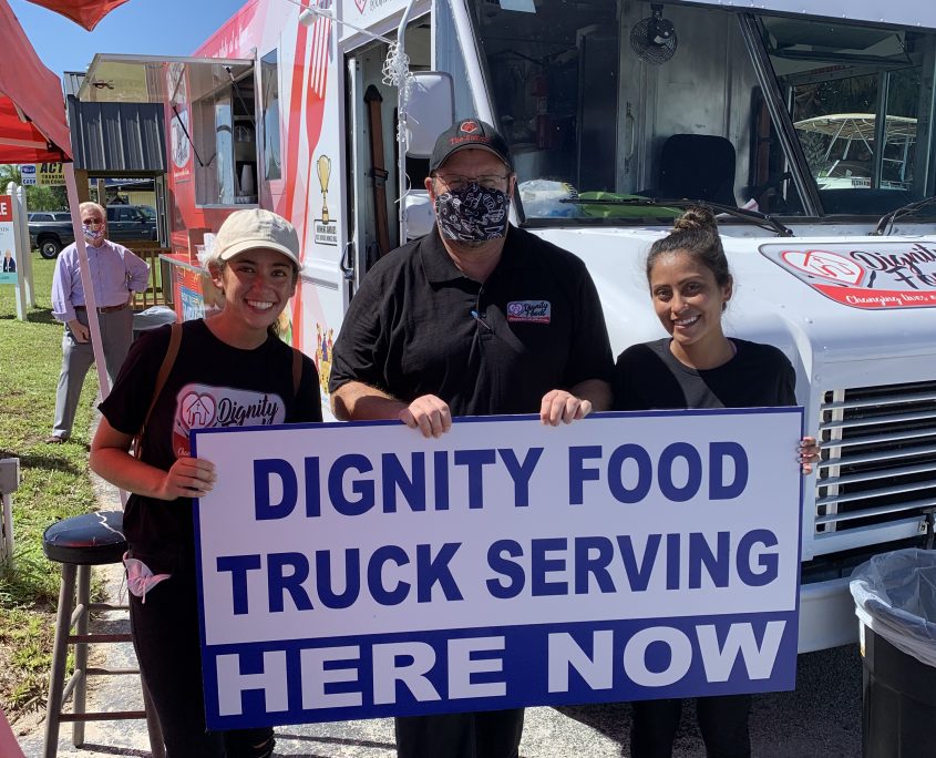 Interested in booking The Dignity Food Truck at your business, organization or special event? Just give Toni Moore, our Kitchen Manager, a call at 772-564-0202, Ext. 209 or email her at toni.moore@iamthesource.org.